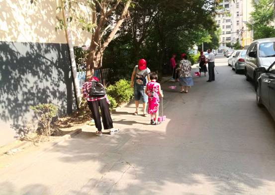 活动中,志愿者们积极行动,利用手中的清洁工具,认真清扫院内、楼道内垃圾以及绿化带中的枯枝杂叶,清除道路周边杂草,清理小区楼道内乱堆乱放杂物,并对乱扔废弃物等不文明行为进行劝阻。